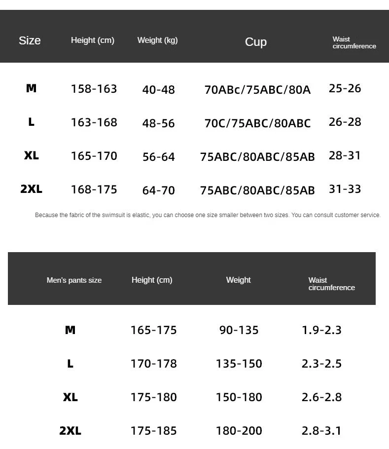 Enhance your beach outings with our stylish and comfortable swimsuits for couples. Our set, designed for comfort, durability, and seaside elegance, promises unforgettable moments under the sun.Â