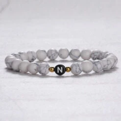 Couple initial bracelets strengthen your relationship bond and show your spouse that you genuinely care about him/her. These particular couple bracelets come in different metal colors, such as silver black matte, silver howlite, gold howlite, and gold black matte. They all look great, and you can choose whichever color you prefer.