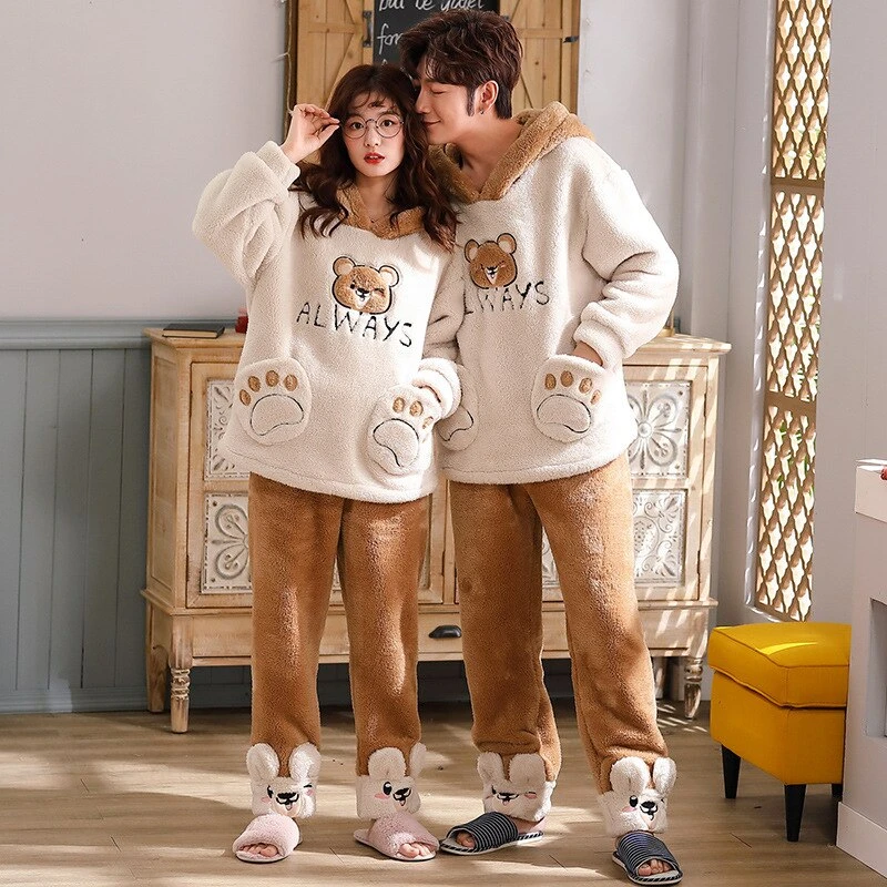 If what you want is a matching outfit for romantic couples, then these cute couple onesies got you covered. The outfit comes in the same unique design for you and your partner. There is a beautiful bear design and a romantic word “ALWAYS” boldly inscribed on the pajamas. Wearing this couple onesie costume with your loved one is a good way to take your romantic relationship to the next level.