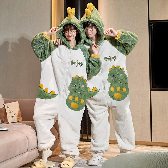 Welcome to a world of playful comfort with our Dino onesie pajamas. These matching couple onesies, made from the finest plush materials, offer unmatched comfort, durability, and a thrilling way to express your adventurous bond. They’re the perfect sleepwear for couples who love to inject a dose of fun into their shared moments.