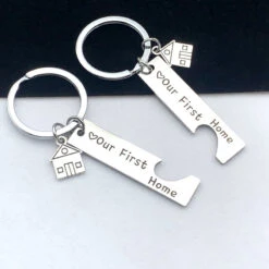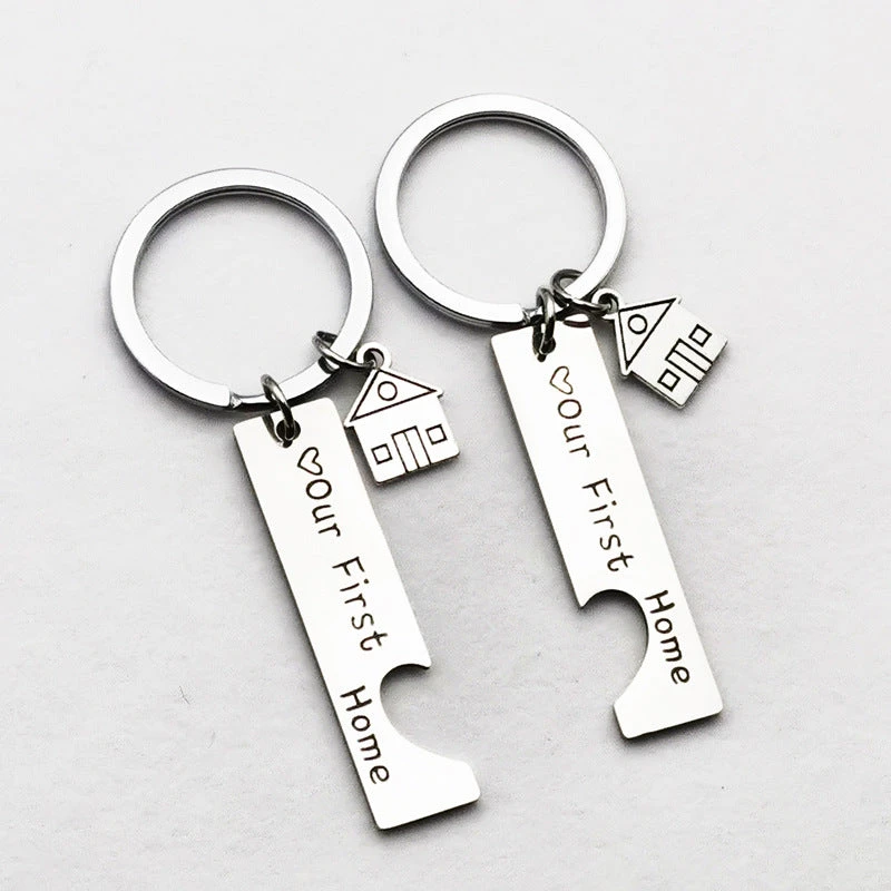 Introducing the First House Couple Keychain, a symbol of the special milestone every couple embarks upon. Celebrate the joy of your shared sanctuary, the first haven you call your own, with this keepsake. Moving into your first house is an occasion that deserves to be remembered.Â