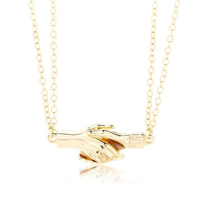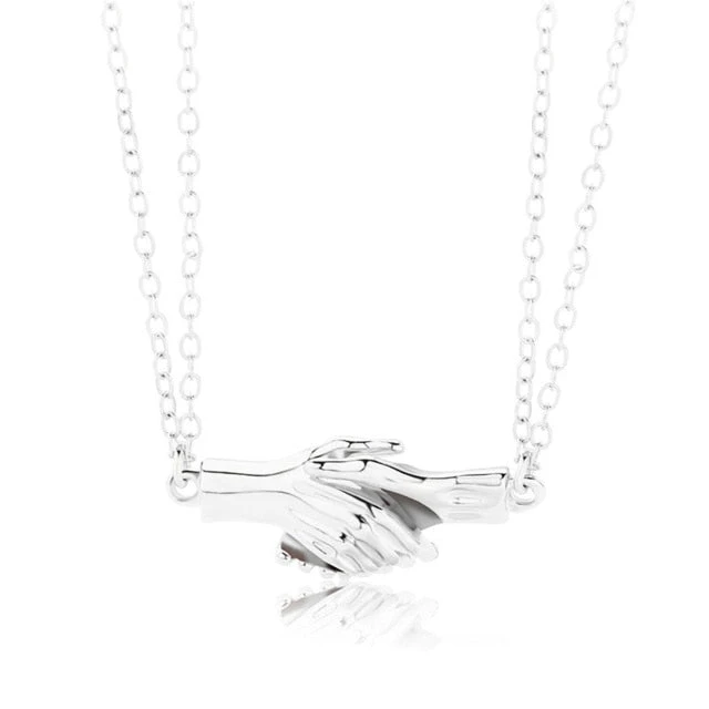 Introducing our Handshake Necklace for Couples – a symbol of agreements made heart-to-heart. Every handshake represents a bond, a promise, and a mutual understanding, making this couple necklace the ideal testament to shared commitments and deep connections. The meticulous details, paired with a shimmering finish, reflect a bond forged by love and trust.
