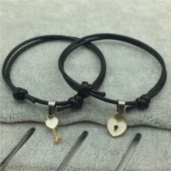 Our Heart Lock and Key Couple Bracelet is not just a piece of jewelry; it’s a symbolic gesture of one heart being unlocked only by the key held by the other. It stands as an emblem of exclusive love and mutual trust.