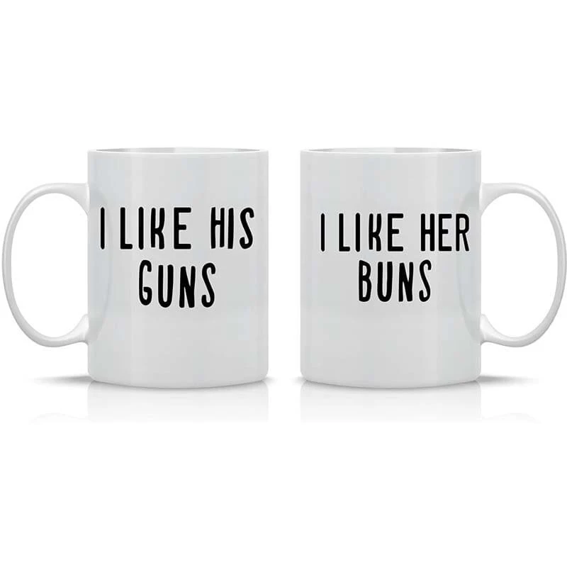 Add a dash of humor to your mornings with our I Like Her Buns I Like His Guns Mugs. Perfect for couples who love to laugh together, these matching couple mugs make every sip special. They’re microwave and dishwasher safe, ensuring they’re as practical as they are charming. Shop now for a playful and loving gift!