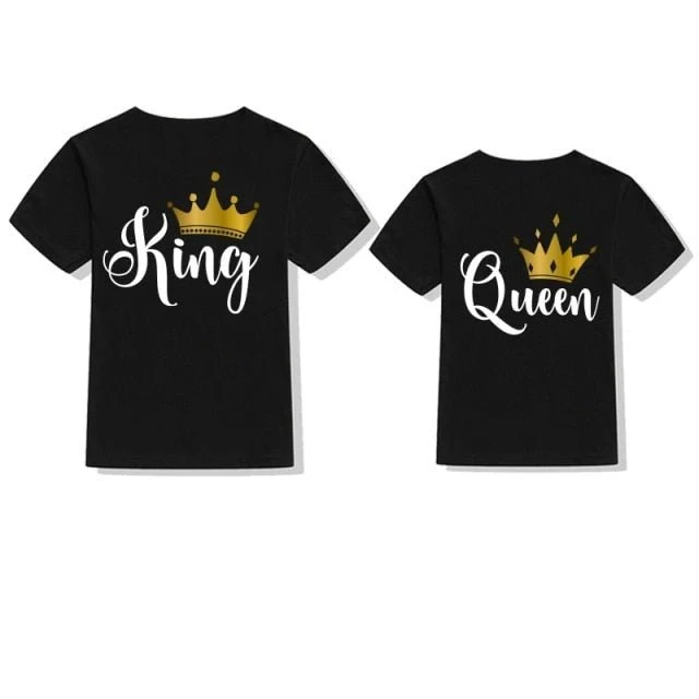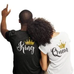 Exude regality and showcase your love with our King and queen couple t shirts gold crown, adorned with a gold crown. These shirts for couples provide a fashionable way to express your affection and make you and your partner feel like true royalty.