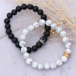 These Matching black and white couples bracelets are more than just jewelry. They symbolize endless love, harmony, and complementarity. These couple bracelets reflect the joining of two souls, where black and white blend to create a symphony of love. If you’re in search of a romantic gift for your partner, this unique piece of jewelry is an ideal choice.Â