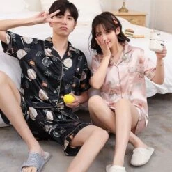 Made from high quality materials, these matching satin pajamas for couples will put you in a bubble of softness just before going to bed.Â