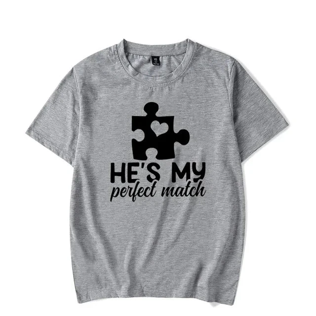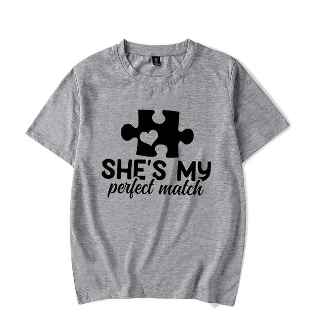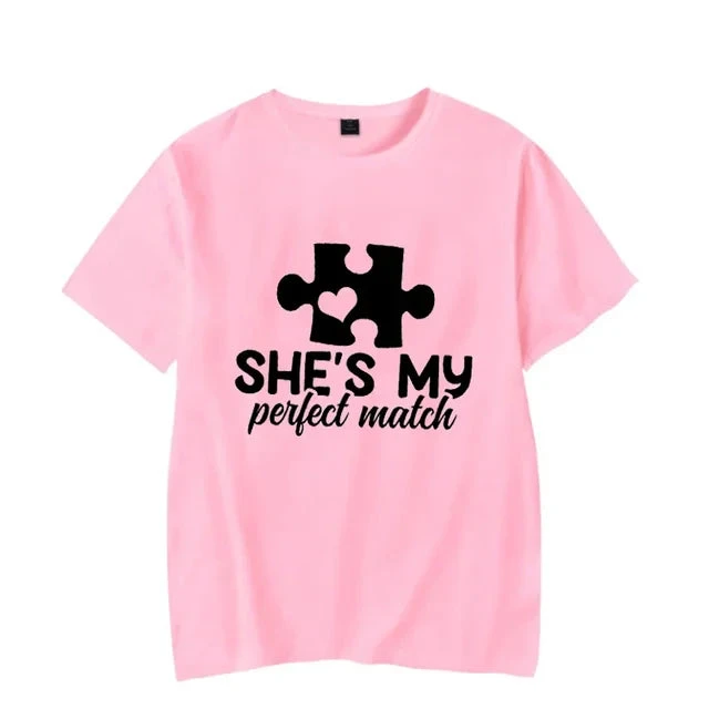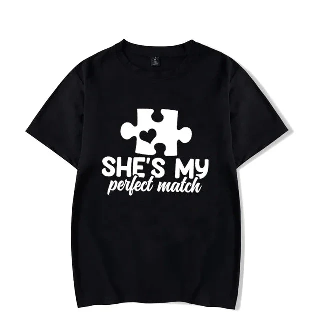 Celebrate your unique connection with our Perfect Match Couple Shirts, the ideal way to express your unity and harmony. These shirts for couples symbolize the special bond you share, making them perfect for anniversaries, Valentine’s Day, or just a day out as a couple. Their charming designs are a fun, stylish way to declare your perfect match to the world.