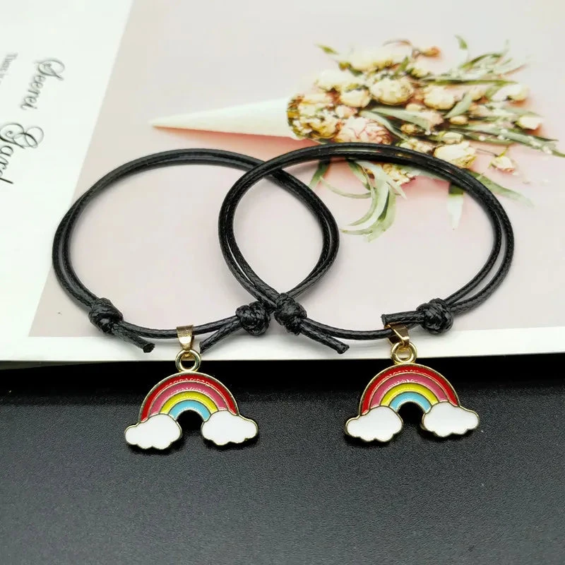 Our Rainbow Matching Bracelets are meticulously crafted from high-quality, hypoallergenic materials, ensuring they are comfortable for daily wear and suitable for sensitive skin. The bright, fade-resistant colors interweave in a durable band, making it as long-lasting as it is beautiful. Its adjustable closure ensures a perfect fit for any wrist size, making it a versatile accessory for anyone in your circle.