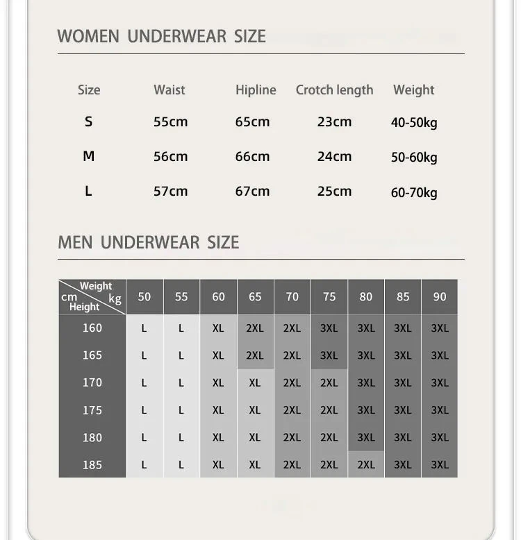 - Included 1 Set of Men and Women Undies
