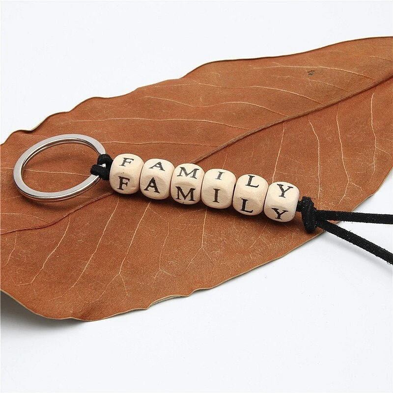 Immerse yourself in the rustic charm of our Wood Bead Keychain. Our “Family Lover Forever” Wood Bead Keychain embodies the deep bonds of love and kinship. Each bead is meticulously engraved with a letter of the words “Family”, “Lover”, and “Forever”, encapsulating the essence of relationships that transcend time and distance.